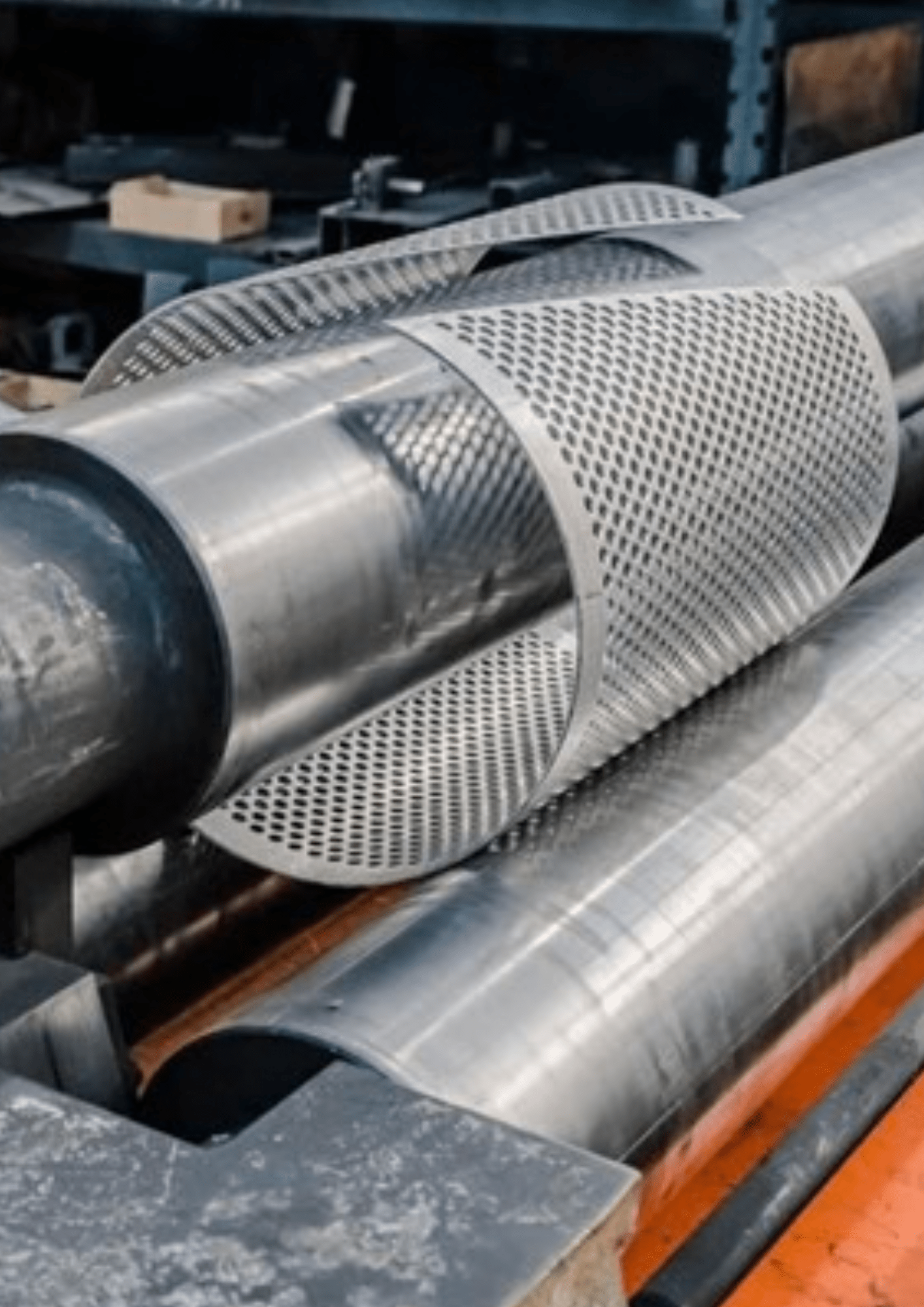 La tôle, prise entre les rouleaux, subit plusieurs passes afin d’obtenir le rayon de courbure souhaité.